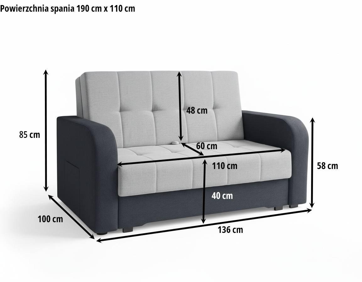 Amerykanka Luna to połączenie nowoczesnego wyglądu, funkcjonalności i komfortu. Jeśli szukasz mebla, który zajmuje niewiele miejsca, a jednocześnie oferuje wygodne miejsce do spania, Luna spełni Twoje oczekiwania. To doskonały wybór do salonu, sypialni gościnnej lub pokoju młodzieżowego.