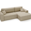 Obicie z tkaniny Tilia zachwyca miękkością i subtelnym połyskiem. Materiał jest odporny na ścieranie, przyjemny w dotyku i łatwy w utrzymaniu czystości. Solidny stelaż oraz wysokiej jakości wypełnienie zapewniają stabilność, dzięki czemu narożnik Linea posłuży przez długie lata.