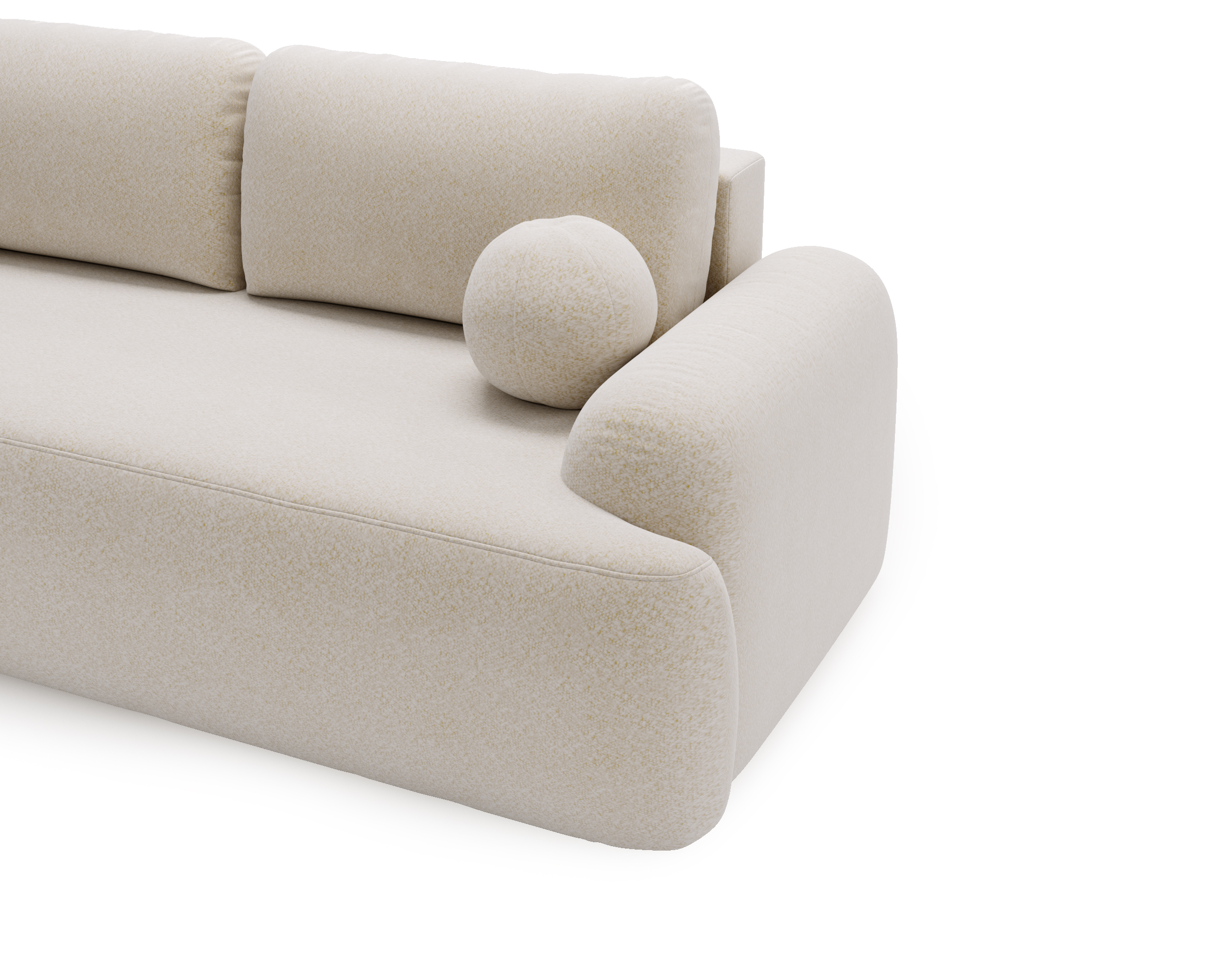 Kanapa Cloudy to nowoczesny model, który łączy elegancję, funkcjonalność oraz wyjątkowy komfort użytkowania. Jej miękka, zaokrąglona forma nadaje wnętrzu przytulności, a modna tkanina bouclé podkreśla stylowy i designerski charakter mebla. Co więcej, strukturalna tapicerka jest niezwykle przyjemna w dotyku, dlatego sofa świetnie sprawdza się zarówno w codziennym relaksie, jak i jako centralny punkt aranżacji salonu.