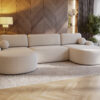 Narożnik CLOUDY w kształcie litery U to nie tylko mebel – to stylowy element dekoracyjny, który podkreśli charakter Twojego salonu. Minimalistyczny design, miękkie kształty i elegancka tkanina sprawiają, że świetnie komponuje się zarówno w nowoczesnych, jak i bardziej klasycznych aranżacjach.