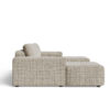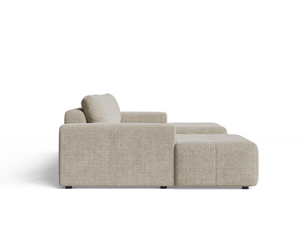 Dzięki neutralnej kolorystyce narożnik doskonale współgra z różnorodnymi dodatkami – od pastelowych, przez naturalne drewno, aż po kontrastowe, intensywne barwy. To mebel, który można łatwo dostosować do zmieniających się trendów, wystarczy zmienić poduszki dekoracyjne czy dywan, aby całkowicie odmienić charakter salonu.