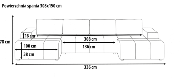 Powierzchnia spania: 308x150cm