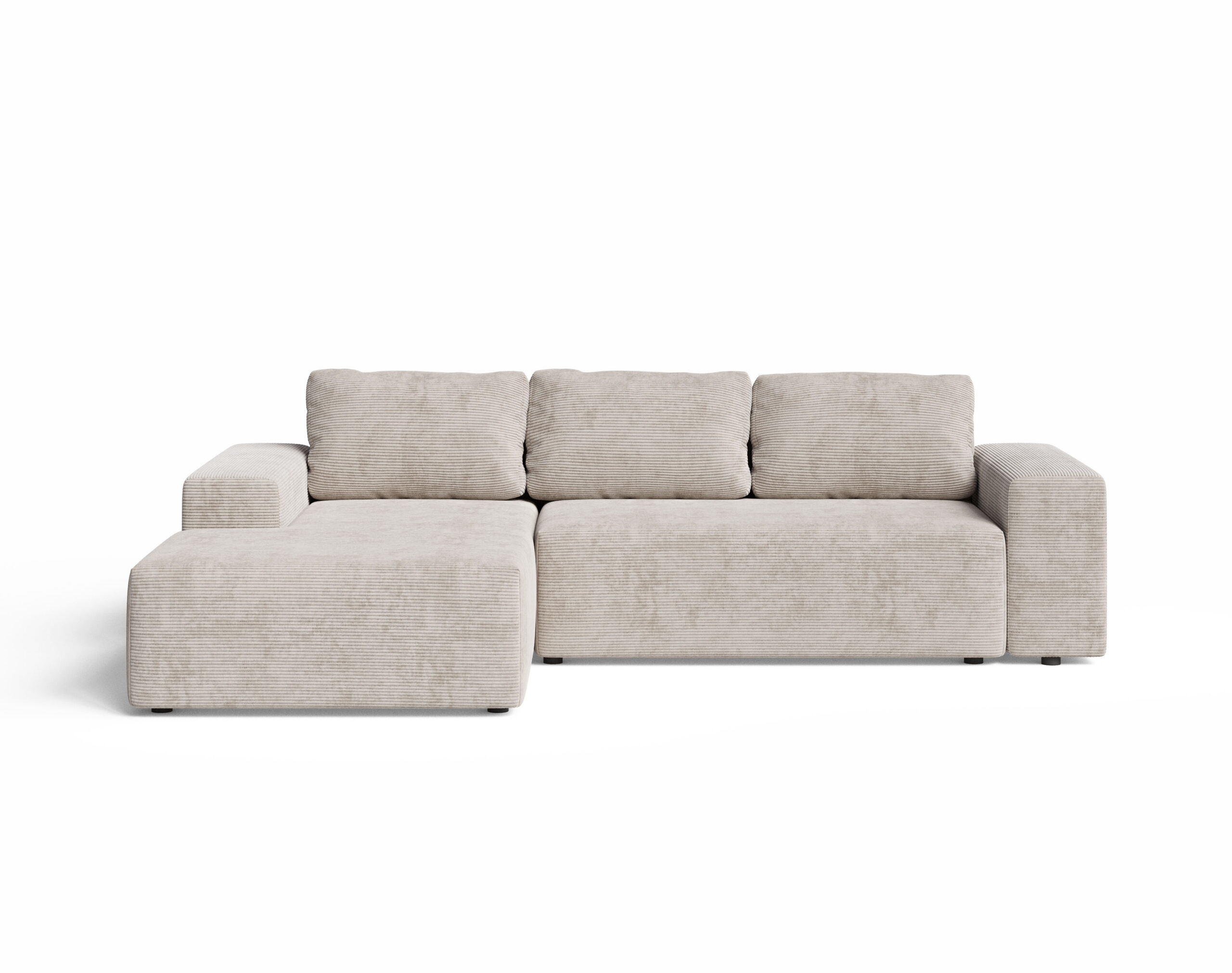 Narożnik Avanti z funkcją spania zachwyca swoim nowoczesnym, minimalistycznym wyglądem. Proste, geometryczne kształty, niskie siedzisko oraz wyraźnie zarysowane linie sprawiają, że idealnie wpisuje się w aktualne trendy wnętrzarskie. Kolor kremowy to uniwersalna barwa, która pasuje zarówno do jasnych, jak i ciemnych wnętrz, dodając im lekkości i elegancji.