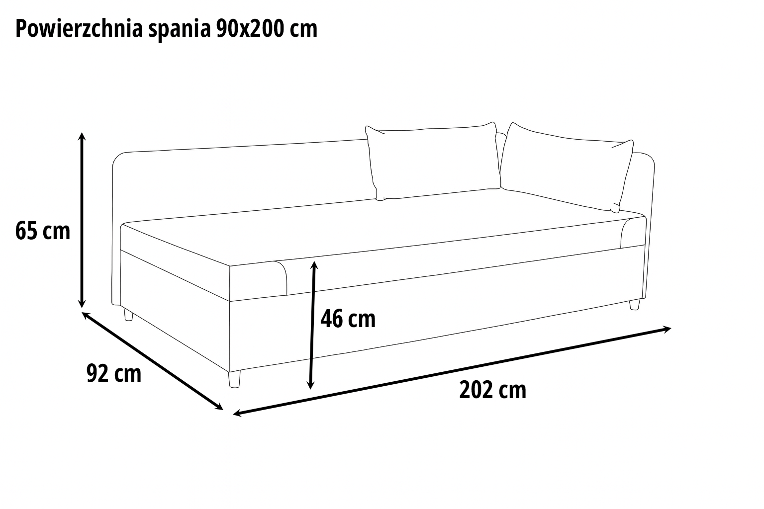 Strona główna » Sklep » Tapczan, łóżko jednoosobowe 90×200 na sprężynach z pojemnikiem Nelis
